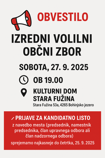 VABILO NA IZREDNI VOLILNI OBČNI ZBOR, 27. 9. 2025